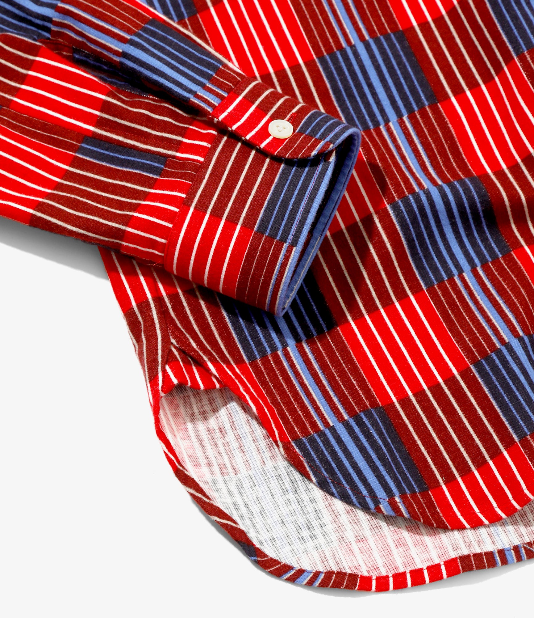 シャツデザインは、オープンカラーやマチ付きのラウンドテールなど、50年代から60年代にかけてのネルシャツに見られる仕立てのディテールをミックスしてアレンジ。全ての縫い代(しろ)に手間のかかる"折り伏せ縫い"の処理をほどこすことで、裏から見たときも美しく、肌にあたりのない滑らかな着心地となっています。